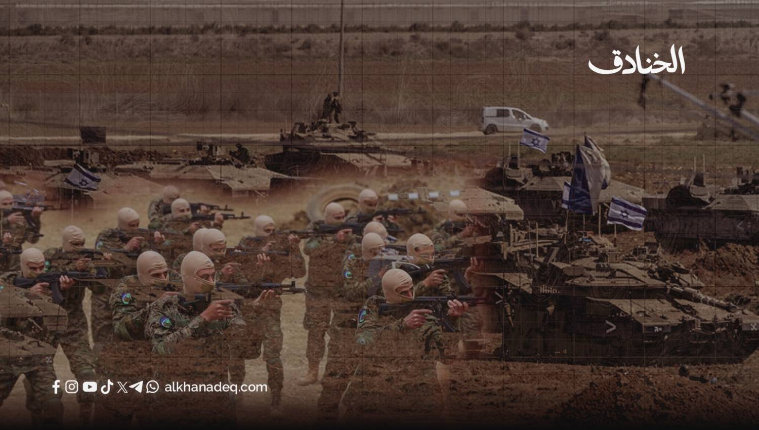 مقاومون في وحدة الرضوان النخبوية ومن خلفهم دبابات إسرائيلية