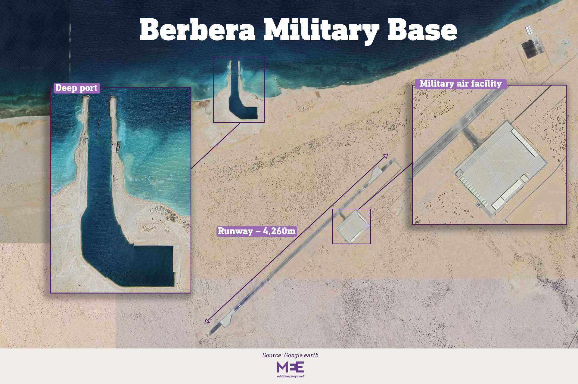 _تدير الإمارات قاعدة عسكرية في مدينة بربرة الساحلية على خليج عدن. والتي وافق برلمان أرض الصومال على إنشائها في سنة 2017، والتي لعبت دوراً منذ ذلك الحين في دعم اعتداءات الامارات على اليمن والسودان.