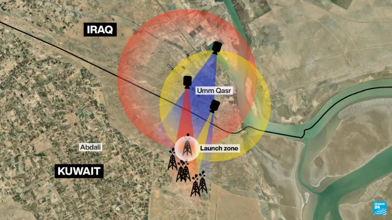 _ إنشاء مرافق عمليات طوارئ عسكرية واتصالات فضائية بعد تضرر القواعد: في ميناء الشعيبة المدني وجزيرة بوبيان وميناء مبارك المدني (قيد الإنشاء) وميناء الشويخ.