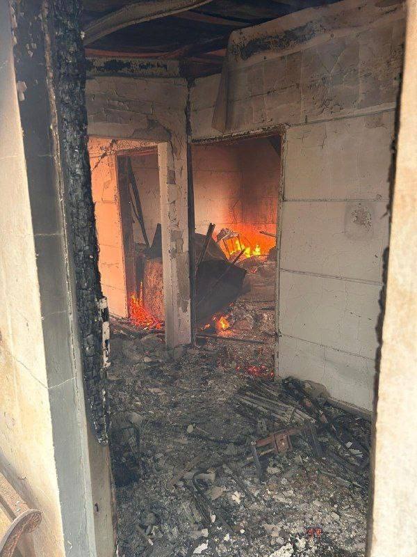 نشب حريق ضخم بعد تدمير مخزّن للغاز كان يحتوي على مائة أسطوانة غاز.
